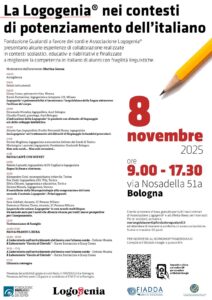 In occasione del 25imo anniversario della LOGOGENIA in Italia a Bologna in data 8 novembre 2025 si svolgerà il convegno e workshop: LA LOGOGENIA NEI CONTESTI DI POTENZIAMENTO DELL’ITALIANO.