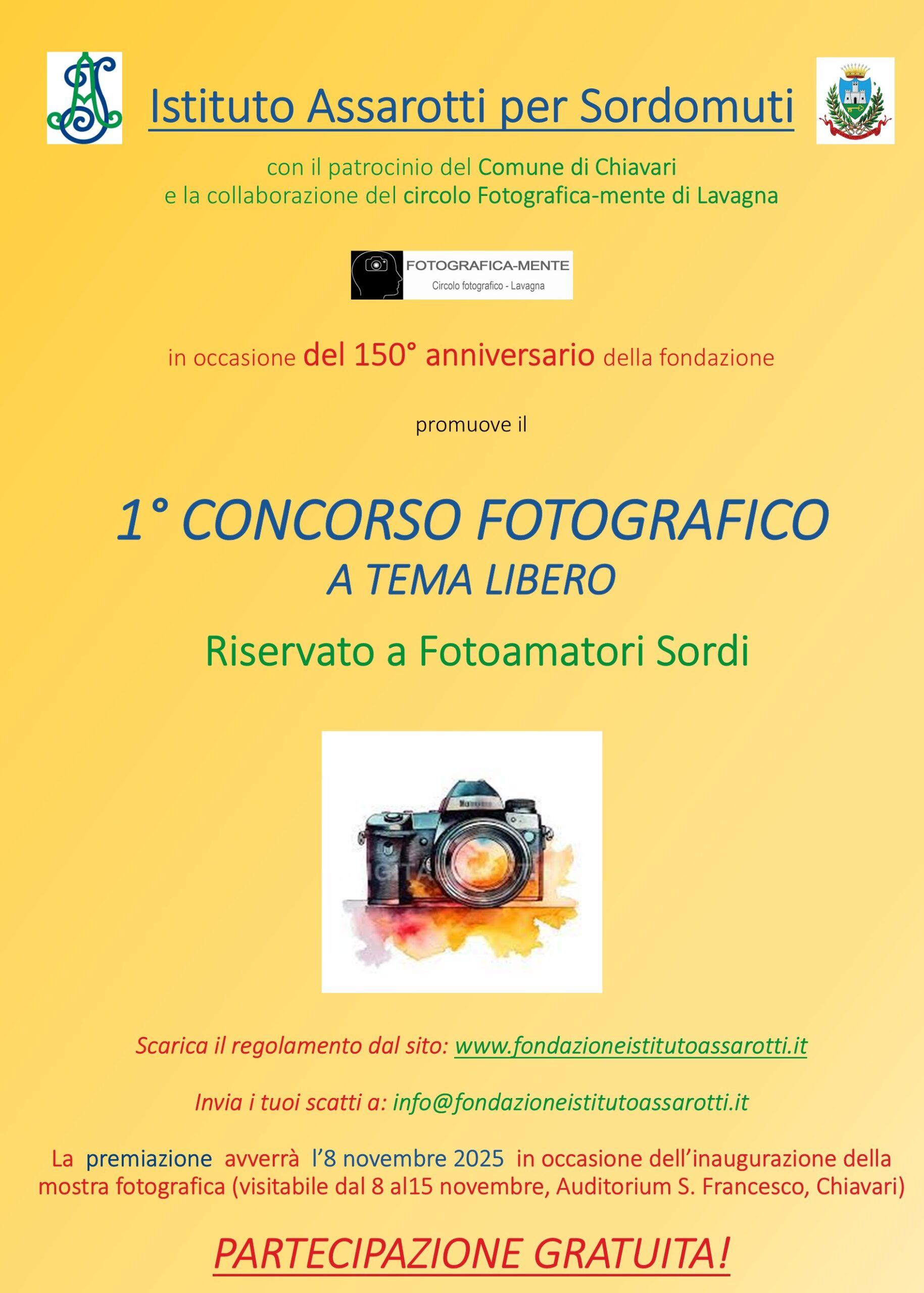 L’ Istituto Assarotti per Sordomuti organizza un concorso fotografico per il 150° anno di fondazione dell’Istituto Assarotti per sordomuti di Chiavari.