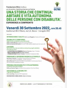 Venerdì 30 settembre: “Una storia che continua: abitare e vita autonoma delle persone con disabilità”